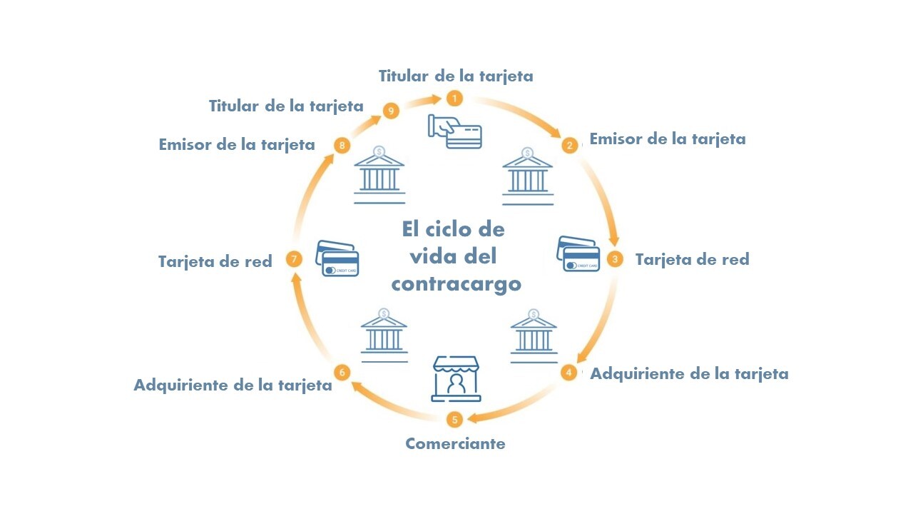 - El titular de la tarjeta disputa una transacción hablando con el banco emisor de la tarjeta en busca de un reembolso (proporcionando una razón para la solicitud).